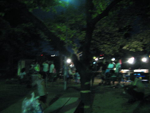 自治会のご挨拶で、青年部が熱心に夜店、焼きそば、焼き鳥、カキ氷、等の準備をされ多くの子ども達が集まっていました
